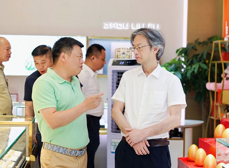 在广东万众珠宝有限公司,陈鸿俊一行在万众珠宝董事长、我校1999届校友何阳华的陪同下,实地考察了万众珠宝代理经营的金六福、周大福、老凤祥等知名珠宝品牌门店,详细了解了万众珠宝的发展历程、用人需求和公司规划。座谈会上,陈鸿俊希望校企双方在已有合作基础上,进一步拓宽合作广度和深度,聚焦学生培养、教师实践锻炼、基地共建、产教融合等领域,大力推动产教融合、产学研合作;持续做好毕业生供需对接,促进更多的毕业生更加充分更高质量就业,构建用人选才的双赢局面。何阳华为母校的蓬勃发展和取得的办学成就感到自豪,他表示将进一步加强万众珠宝与学校的联系,充分发挥“万众珠宝首饰产业学院”作用,打造校企合作新典范,为母校事业发展作出新的更大贡献。
