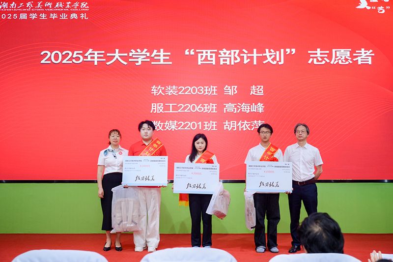 陈鸿俊、夏能权为省级、校级优秀毕业生颁发获奖证书,为校友联络大使颁发聘书,为邹超等3名“西部计划”志愿者佩戴绶带并赠送“去祖国最需要的地方”专属车票和纪念品。