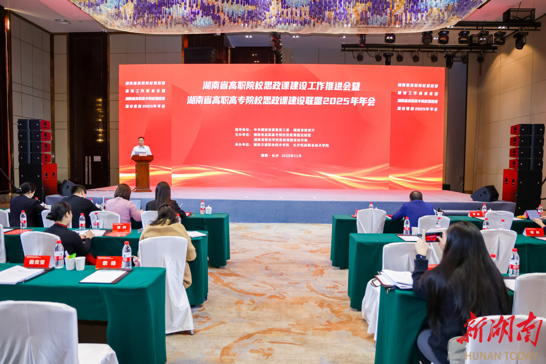 为深入学习贯彻党的二十届四中全会精神,推进全省大中小学思政课一体化改革创新,全面提升高职院校思政课建设水平,11月13日,湖南省高职院校思政课建设推进会暨湖南省高职高专院校思政课建设联盟2025年年会在长沙举行。全省高职院校领导、思政课教师代表等齐聚一堂,共商思政课改革创新与高质量发展大计。