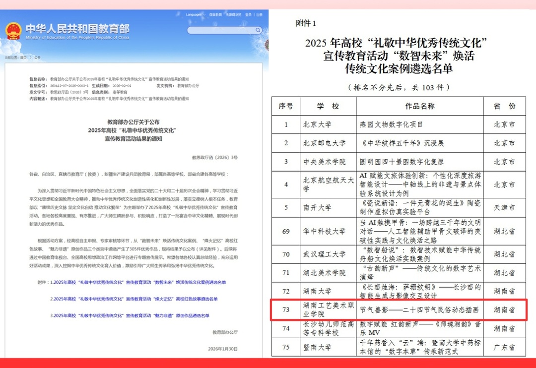 此次活动以“赓续历史文脉、坚定文化自信、推动文化繁荣”为主题,面向全国高校征集作品。经高校自主申报、专家严格审核等环节,最终遴选出“数智未来”焕活传统文化案例优秀作品103件、“烽火记忆”高校红色故事优秀作品100件、“魅力非遗”原创优秀作品102件。