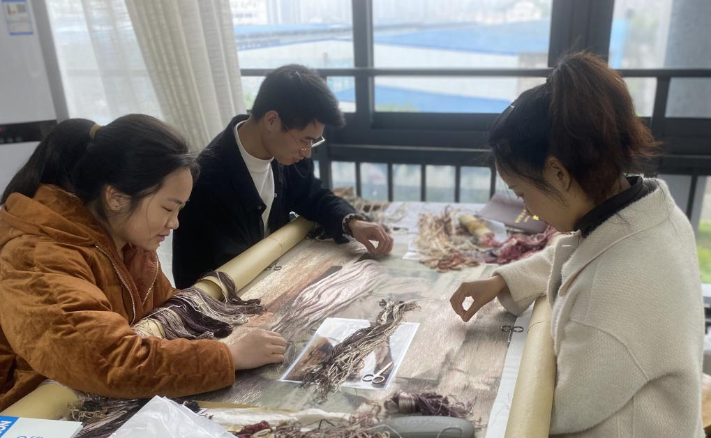 李利华老师带领2名学生刺绣作品《血色湘南》