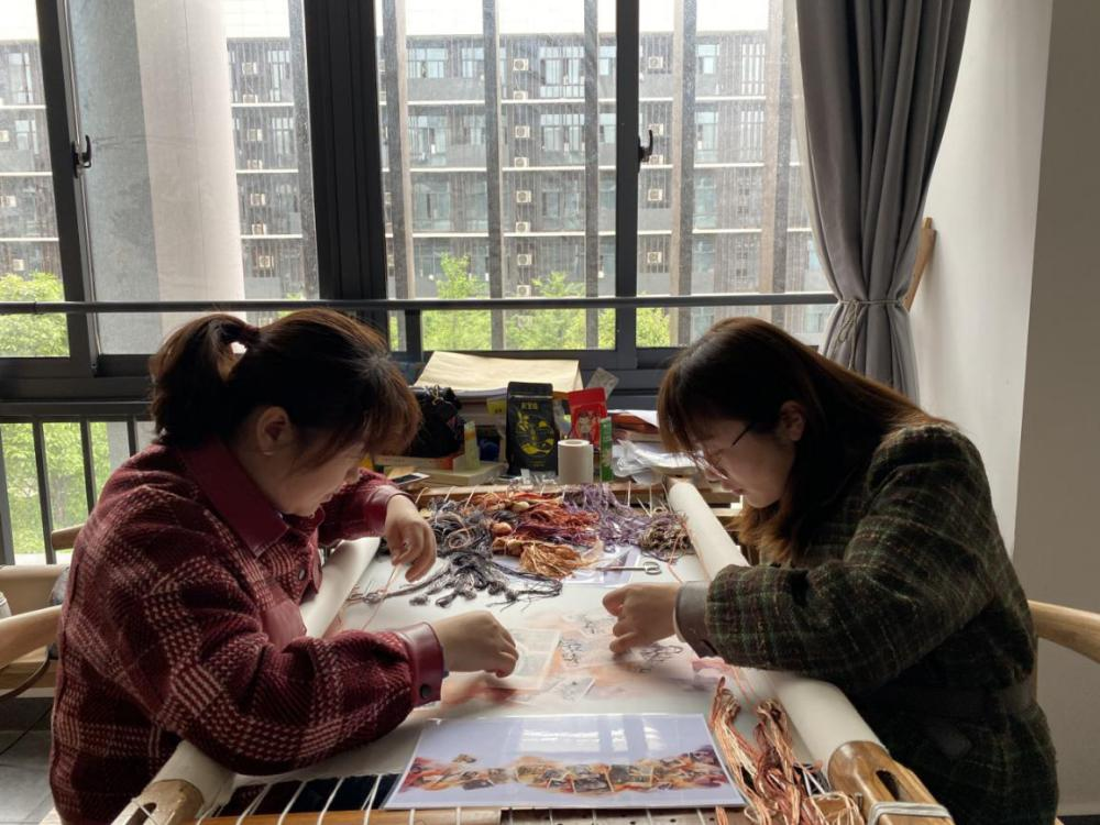 陈阿平、钟翔两位老师带领学生刺绣作品《延水瑶》