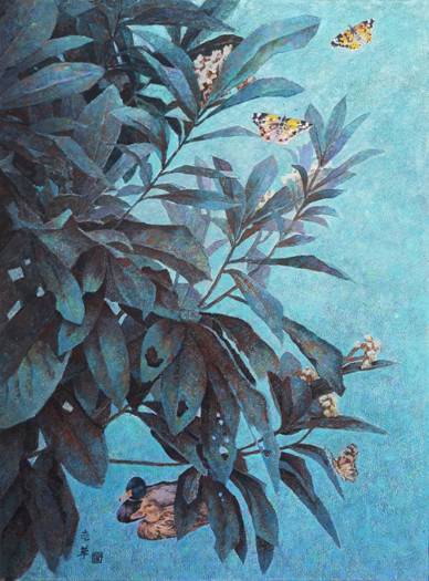《蝶绕》37x50cm,2021年 水粉