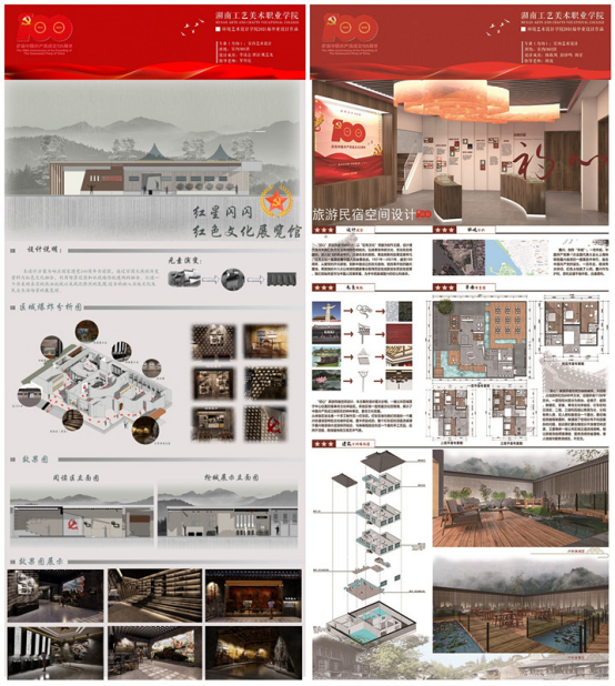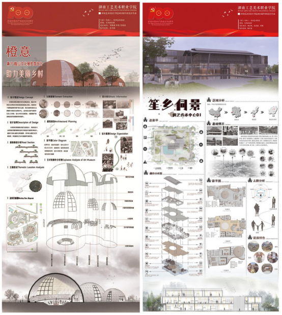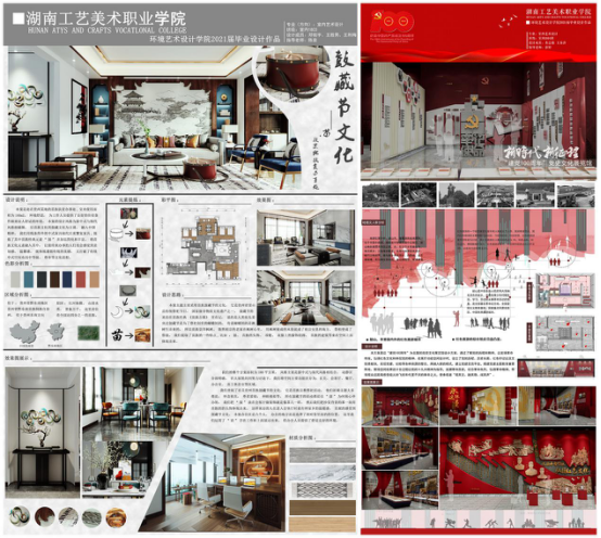 本届毕业设计共有环境艺术设计、室内艺术设计、建筑设计、展示艺术设计、公共艺术设计5个专业(9个专业方向)23个毕业班参加,共提交三百多件作品,真实地反映了学院强化“三全育人”、服务地方经济、助力乡村振兴、深化产教融合的办学理念与办学成果。