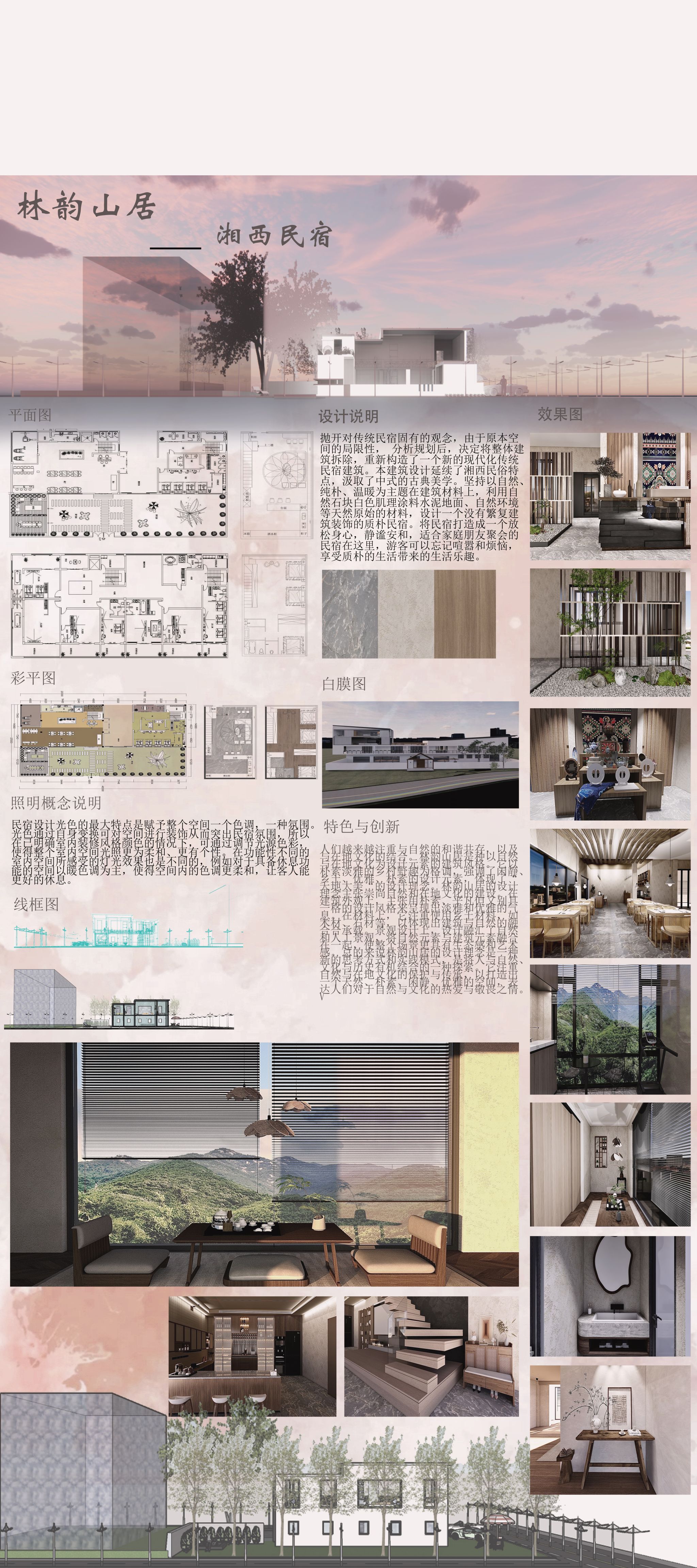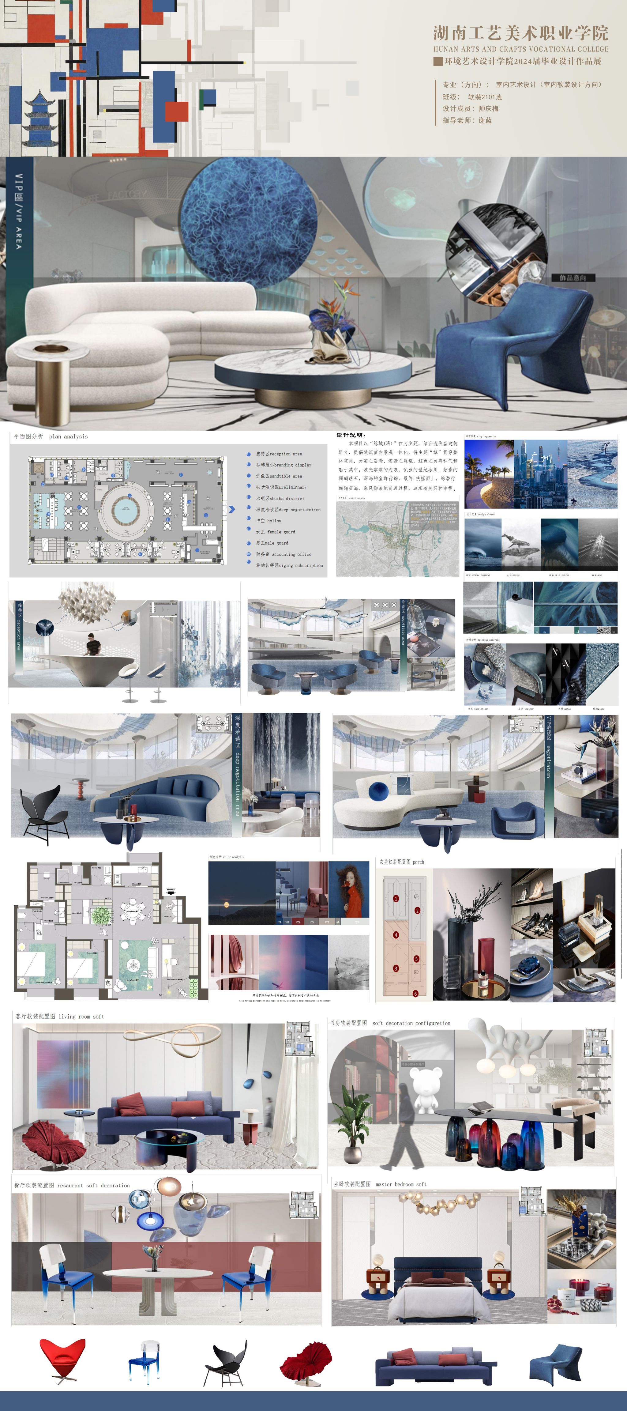 本册作品集收录了 2024 届环境艺术设计、室内艺术设计、建筑设计、展示艺术设计 4 个专业( 7 个专业方向)的毕业设计优秀作品,真实地反映了学院强化“三全育人”、服务地方经济、助力乡村振兴、深化产教融合的办学理念与办学成果。值此群贤毕至之际,祈盼社会各界共赏创意、品评设计,以助我院继续以昂扬之势提升办学质量,培养更多高素质技能人才回馈社会!
