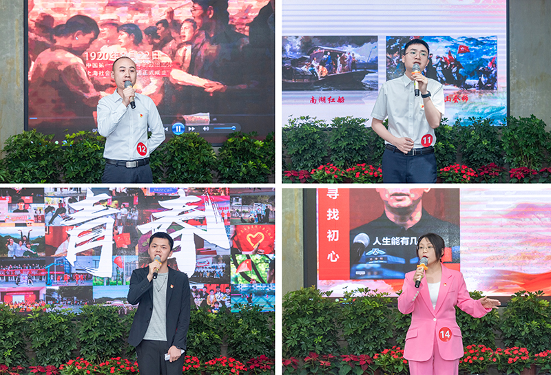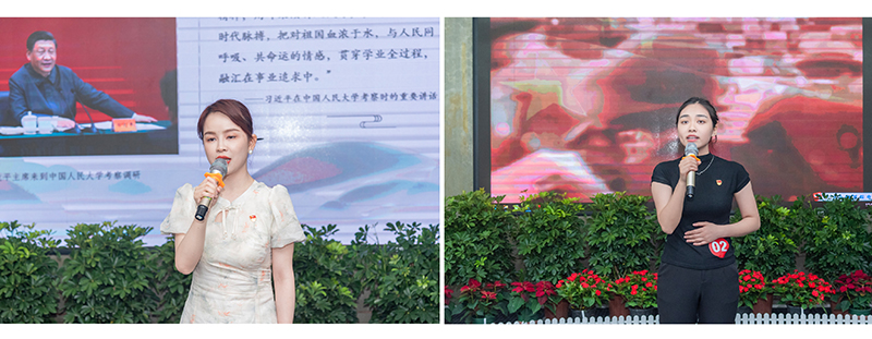 “青年应以青春奋斗‘花朵’装点华夏‘壮美山河’、应以青春飘扬‘旗帜’挺身勇挑‘时代使命’、应以青春炙热‘能量’开拓拼搏‘康庄大道’”。来自学生工作部、团委联合党支部的选手夏子涵用丰富的事例告诉广大青年应以何种姿态落笔写下美好的“青春年华”。长沙基地综合管理办公室党支部的李沐林以《回家,回家!》为题,深刻阐述了“家”和“国”的精神力量。她认为,对于家的坚守、国的热爱已经深深植根于每一个中国人心田,在实现中华民族伟大复兴的征程中,每一个中国人都应担负起时代赋予的责任和使命。手工艺术学院党总支的王子健以《争做新青年 不负新时代》为题,号召新时代青年拿出闯劲干劲、决心恒心,为实现中华民族伟大复兴奋力拼搏,让青春在全面建设社会主义现代化国家的火热实践中绽放绚丽之花。公共课教学部支部的彭玺从党徽上的“为人民服务”五个字展开,讲述了老中青三代青年接力为民的故事,展现了一名党员教师在技能成才、技能报国的新时代奋进新征程的蓬勃朝气。
