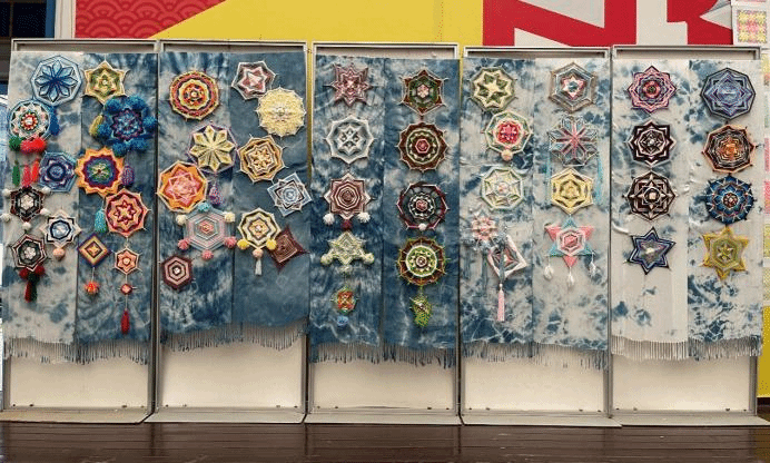 课程感言:在纤维饰品这门课程中,我们体会到了自己亲自动手带来的体验感和成就感。通过100张纸编组成了一道靓丽的背景墙,我们体会到了集体凝聚的力量;在扎染课程中,丁宇老师亲手带我们调试染料、捆扎绑结,得到了形态各异的图案样式,从中体会到了扎染的随机性和趣味性;在曼达拉编织中,我们两个班级合力做成了装饰墙挂,并组成了一面令人震撼的背景墙。