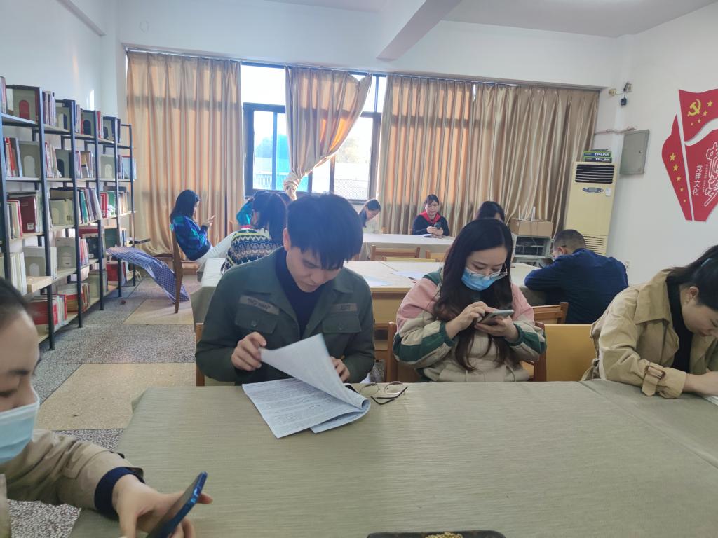 2020年11月10日,教务处党支部在图书馆四楼组织2020年下学期第四次教职工理论学习,专题学习党的十九届五中全会精神。