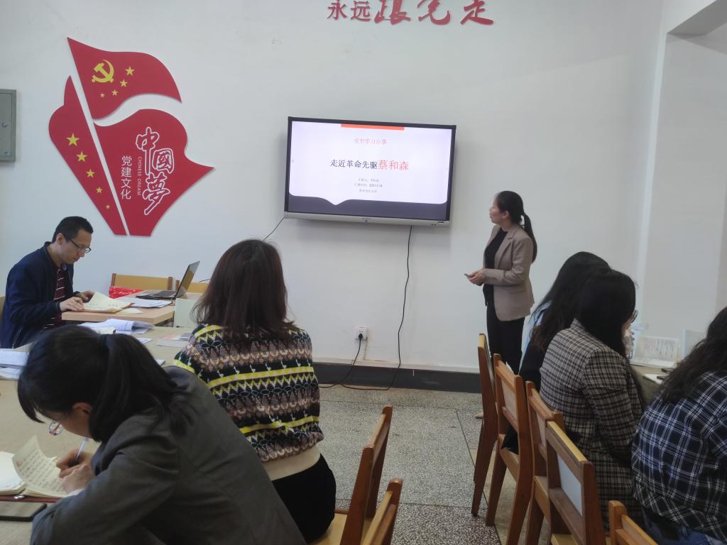 在支部学党史谈主题分享环节,符燕京同志给大家分享了20世纪60年代的种种艰苦生活,并与现如今的生活做了一对比,感叹人们的衣食住行和生活环境、工作条件都发生了翻天覆地的变化。让大家要倍加珍惜和维护现在幸福和安定和谐的生活。随后李虹霞同志分享了《走进革命先驱—蔡和森》,她通过为革命先驱蔡和森人物画像,梳理其革命成就,分析其取得伟大成就离不开人生中一些重要人物的影响,包括其恩师、同窗、家人、妻子等等。由此而得出感悟作为一名党员要坚定理想信念,坚持学习创新,做好榜样示范。