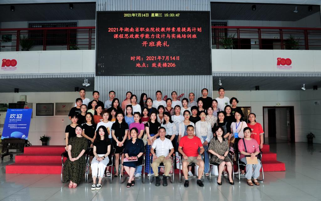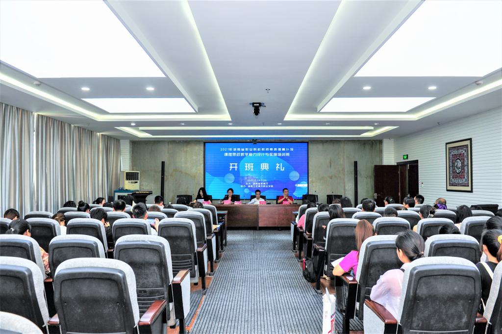 7月14日下午,由省教育厅主办、我校承办的湖南省职业院校教师素质提高计划2021年省级项目——课程思政教学设计与实施培训开班典礼在我校致美楼206会议室举行。学校副校长刘英武、教务处副处长符燕津、培训中心副处长凤建煌、培训班班主任陈祉音出席开班典礼,来自全省40多所职业院校的50名参培学员参加了开班典礼。开班典礼由教务处副处长符燕津主持。