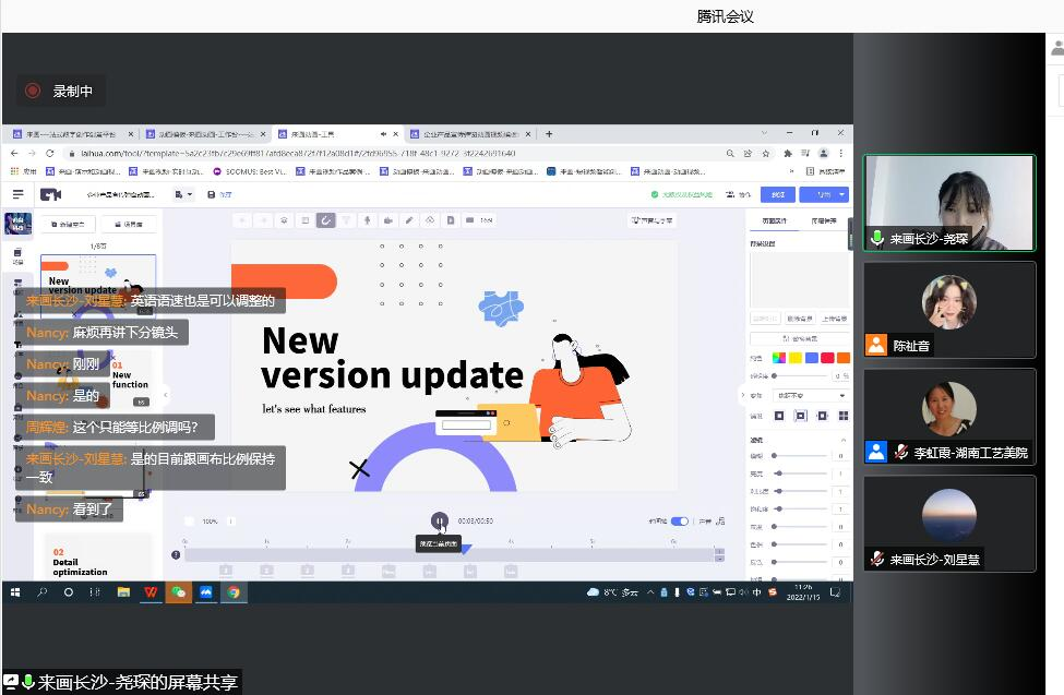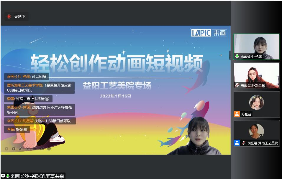 培训共分为两个主题,由来画公司资深培训讲师刘星慧、尧琛联合主讲。其中刘星慧老师重点介绍了来画学园的产品矩阵,针对来画动画、来画视频等五款工具进行了详细介绍;尧琛老师主要讲授来画工具的具体操作。培训过程中,两位主讲教师对参培教师的疑问及时答疑。参培老师纷纷反馈,培训内容充实,互动活泼,初步了解、掌握了使用来画工具制作微课的基本方法,收益明显。
