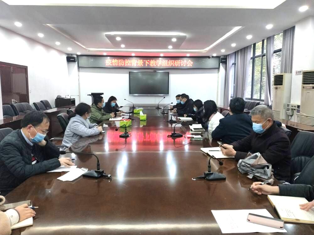 3月22日下午,学校召开疫情防控背景下教学组织研讨会,副校长刘英武出席并主持会议,教务处、各教学单位党政负责人参加了会议。