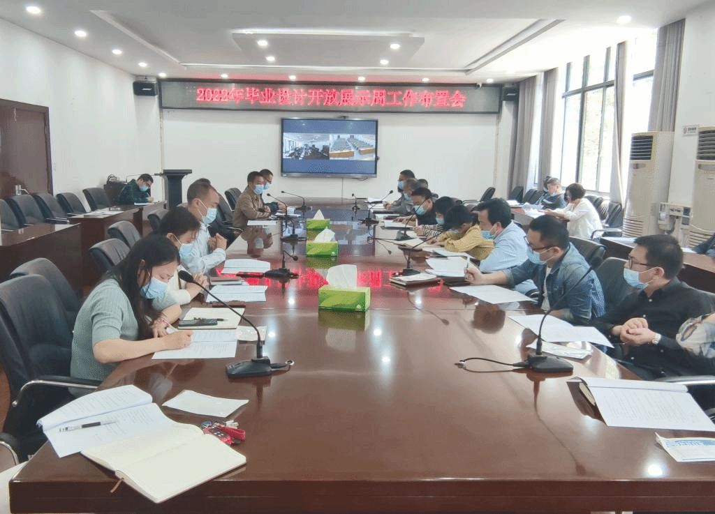 5月4日上午,学校在致美楼201会议室召开2022年毕业设计开放展示周工作布置会。学校校长陈鸿俊、副校长刘英武出席会议,教务处、学生处、宣传统战部(网宣办)、后勤处、保卫处、信息中心、各二级学院负责人参加了会议。