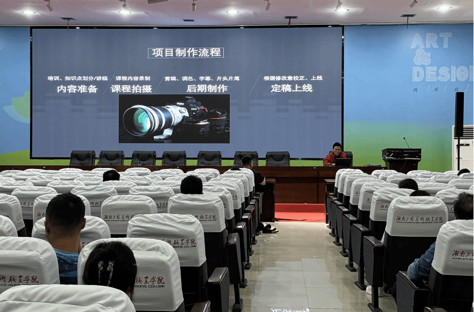培训会由杭州树慕影视有限公司负责人张容主讲,他围绕课程视频拍摄流程、准备工作、拍摄形式、教师着装等进行详细讲解,结合公司经典案例视频向老师们展示拍摄方式以及后期视频制作流程,并现场解答老师们的提问。