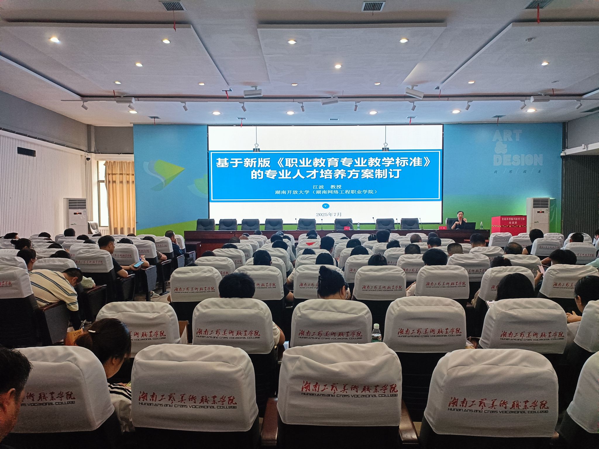 为进一步做好2025级专业人才培养方案修(制)订、毕业设计工作,学校特邀湖南开放大学江波教授于7月26日来校作专题讲座。学校副校长刘英武出席,教务处、各二级院部负责人、工学部(教研室)主任、专业带头人、专业人才培养方案执笔人、核心课程标准执笔人等120余人参加讲座。讲座由教务处副处长李虹霞主持。