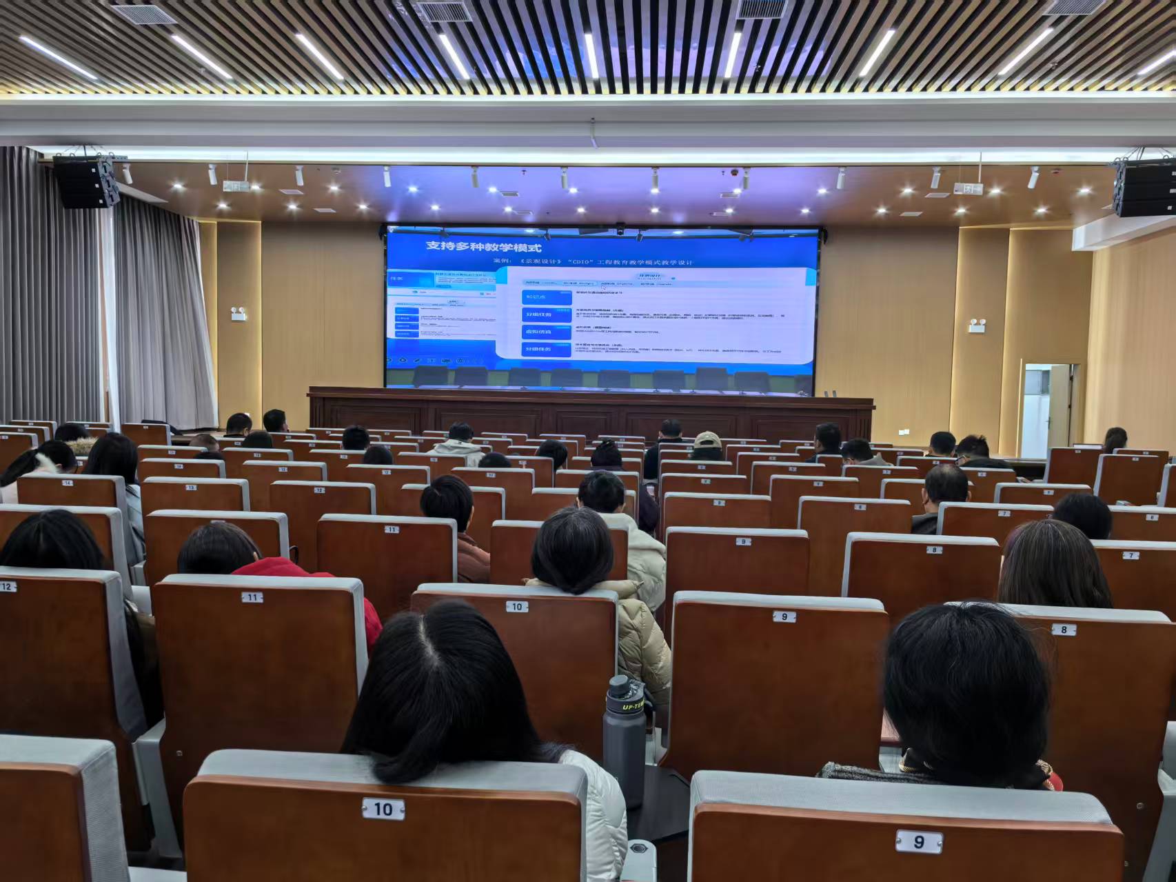 讲座过程中,培训师重点介绍了知识图谱与能力图谱在课程结构化建设中的重要作用,并结合《大学语文》具体课程案例,清晰演示了如何实现知识可视化呈现与学习路径个性化引导。参培教师跟进式学习了AI助教、智能课件生成、教案一键生成、作业智能查重等多种工具的应用场景方法技巧,凸显出AI技术在提升教学效率、拓展混合式教学模式、加强过程性评价等方面的实用价值与显著成效。