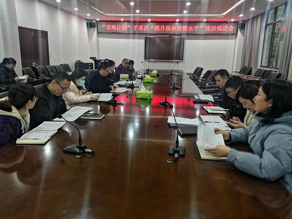 12月24日下午,学校“双高计划”子项目“提升服务发展水平”建设推进会在致美楼201会议室举行。会议由子项目负责人科研处处长刘光平主持,学校人事处、教务处、校企合作处、创建办、双创学院等相关部门负责人参加。