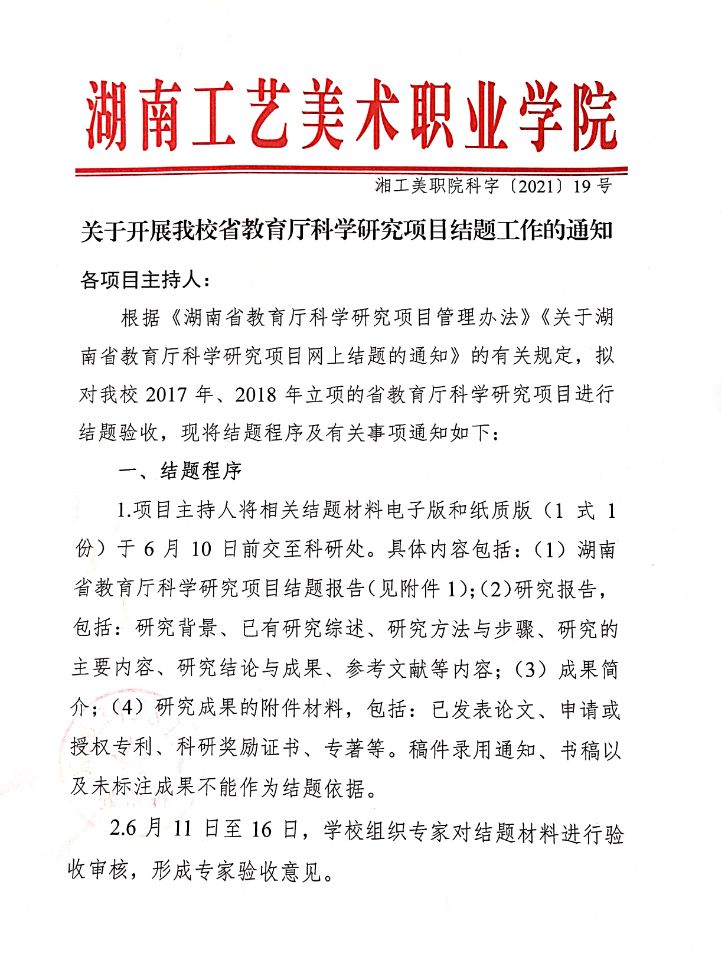 关于开展我校省教育厅科学研究项目结题工作的通知