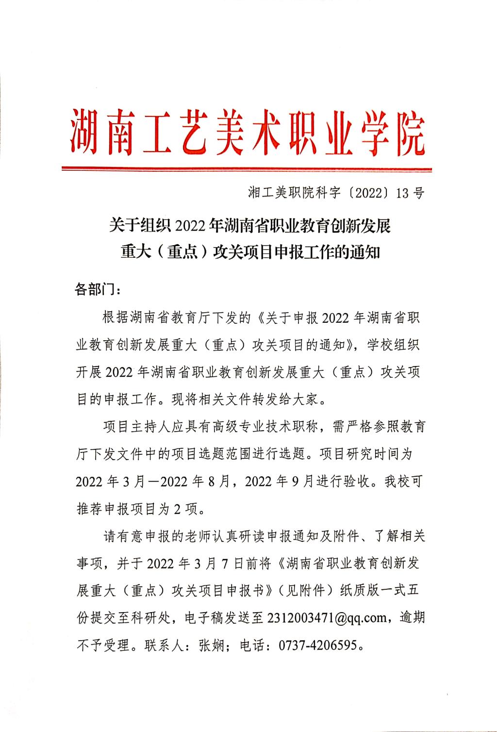 关于组织2022年湖南省职业教育创新发展重大(重点)攻关项目的申报工作的通知