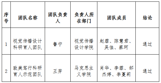科研育人示范团队验收情况一览表