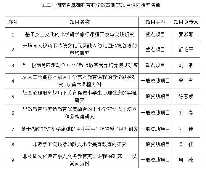 附件:第二届湖南省基础教育教学改革研究项目校内推荐名单