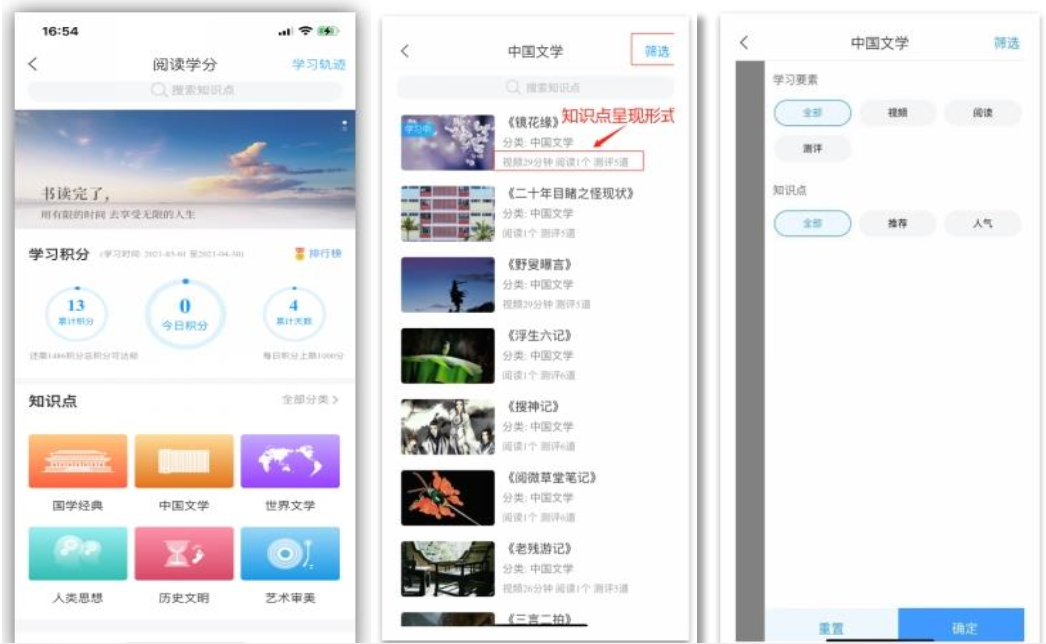 本活动集在线阅读与学习行为积分管理为一体,准确记录读者阅读、知识测评的积分。内置“国学经典”、“中国文学”、“世界文学”、“人类思想”、“历史文明”、“艺术审美”、“科学技术”、“经济社会”等多个板块,精选经典图书,内置相关知识测评。
