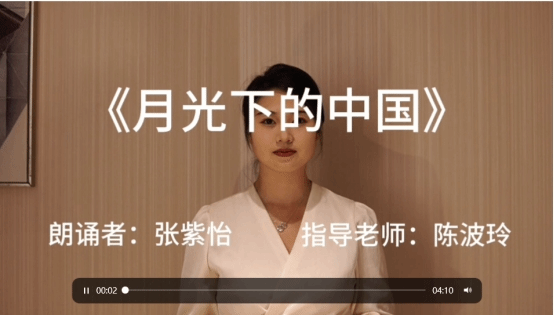 活动活动采用线上投稿的形式,共收到了30组参赛视频。经评审,评出张紫怡同学的作品《月光下的中国》获一等奖,李姝同学的《万疆》、张远铃同学的《月光下的中国》获二等奖,谢小林《致橡树》、肖成语和曾皖佳同学的《春江花月夜》、李祺等同学的《乡愁》与《我爱这片土地》获三等奖,以及评出优秀奖7组。评出陈波玲老师为优秀指导教师。
