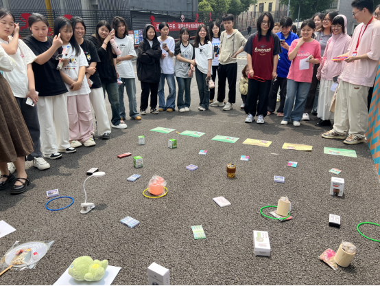 4月28日中午,“读书套圈乐 书香满校园”趣味套圈活动在致美楼前坪举行。