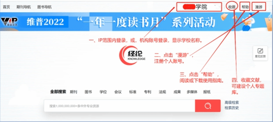 校园网范围内,访问网址,直接登录系统(通过漫游账号拥有更多权限的同时可通过收藏功能管理个人的检索资源);