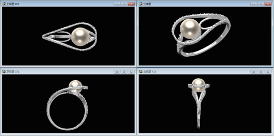根据提供的首饰图,运用JewelCAD软件完成复杂戒指的建模,并运用Photoshop进行图片后期处理,完成产品效果图的制作。要求首饰效果图能够较为准确的表现首饰的造型、材质、色彩、细节。三维渲染的光线合理,材质逼真,场景适当。选择首饰模型的最佳角度,全方位展示首饰的造型美与艺术美。