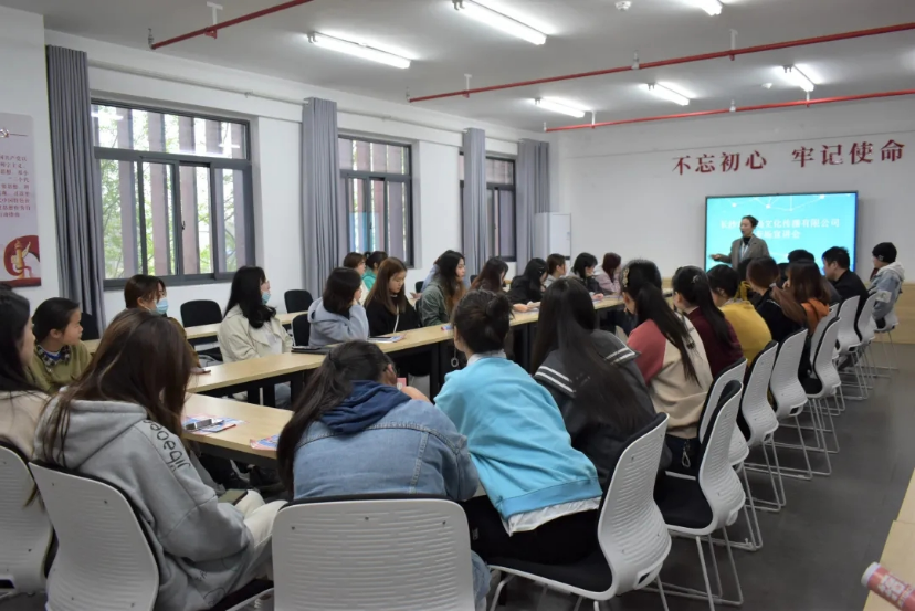 长沙市合尚文化传播有限公司人事经理余琦从公司概况、员工架构与线上师资、公司目前经营情况及未来工作计划等方面进行了详尽的分享。在宣讲会的互动环节,同学们就自己所关心的问题与余琦进行了互动交流。