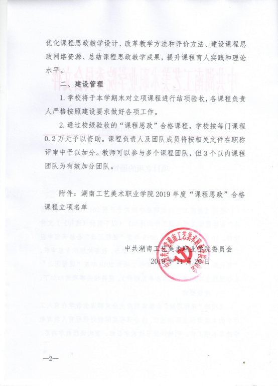 湘工美职院党字〔2019〕35号关于2019年度“课程思政”合格课程项目立项的通知