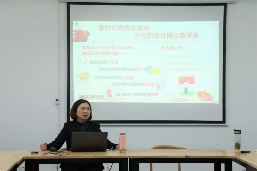 刘凤姣从新时代党的建设面临的新形势新任务,新时代党的建设总要求和战略部署,坚定理想信念是党员思想建设的首要任务三个方面与大家一起交流。她结合当前新闻时事热点,结合典型案例,并就普通党员如何在自己的岗位上做到不忘初心、牢记使命提出了自己的意见和建议。