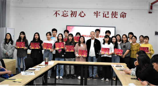 学院党总支书记刘亮以“从党史中读懂共产党人的初心”为题,带领毕业生党员回顾了党百年来的艰辛历程,回忆了入党时的点点滴滴,希望大家在新的学习和工作岗位中,永葆入党初心,牢记党员使命,不断增强党性修养,以更加高昂的精神、优异的成绩践行对党的庄严承诺。