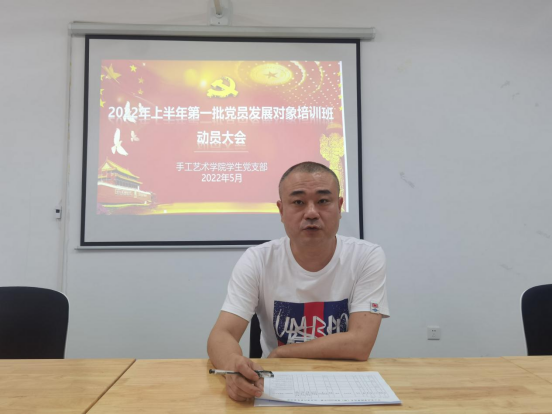 为落实发展党员工作总体要求,进一步提高学院组织发展工作质量,结合学校党委2022年上半年党员发展对象培训班的有关要求,5月10日,手工艺术学院党总支召开2022年上半年发展对象培训班学习动员大会。会议由手工艺术学院学生党支部书记祝李杨主持,党总支书记刘亮和全体发展对象参加会议。