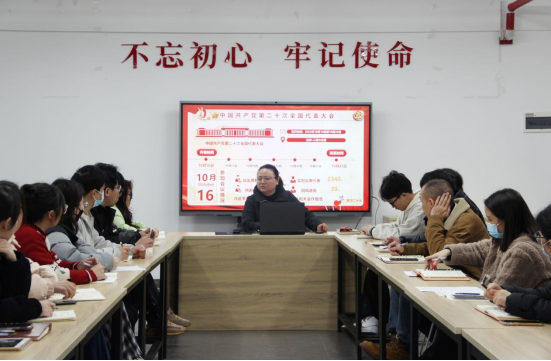 3月20日,手工艺术学院学生支部书记祝李杨同志以“青春践行二十大,团结奋楫新征程”为题给学生支部全体党员上了开学第一堂党课,党课在201党员活动室举行。