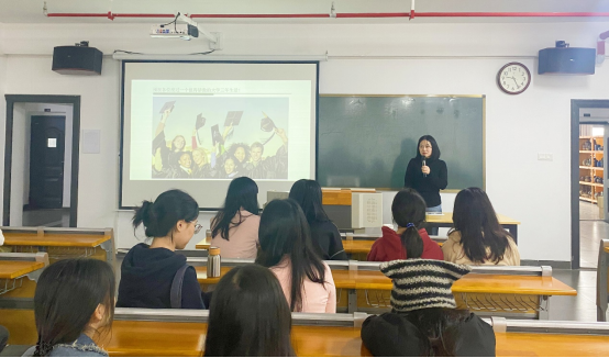周婷同志为产品艺术设计专业新生进行专业介绍与咨询(蔡娟摄影)