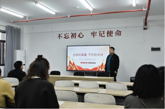 李蕾同志首先领学《习近平总书记谈学习党史国史》,黄昕同志以《光辉的篇章 不朽的丰碑》为题,为大家讲授了一堂富有启发性的微党课,以此激励党员同志在新时代的征程中不忘初心、牢记使命,为实现中华民族伟大复兴的中国梦贡献力量;活动中,党员们集中观看了教育视频《习近平:抗美援朝战争伟大胜利是中华民族走向伟大复兴的重要里程碑》。