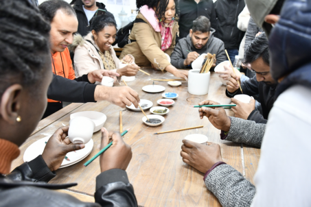 11月23日,手工艺术学院(湘瓷艺术学院)黄永平陶瓷大师工作室热闹非凡,这里迎来了一批来自阿富汗、也门、马达加斯陶瓷彩绘爱好者,他们是湖南大学国际交流处的留学生们,面对精美的醴陵釉下五彩瓷,留学生对表现出了极大的兴趣。