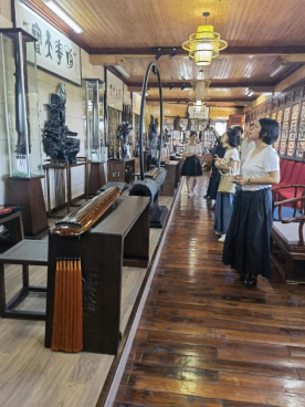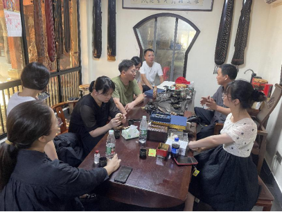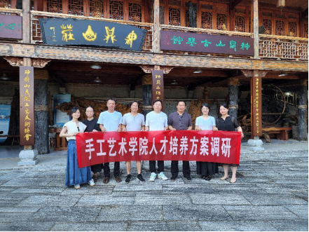 7月25日上午手工艺术学院副院长王飞带队,工艺品、雕刻、首饰、产品设计、工业设计等各专业教师代表一起赴汨罗市华雅工艺美术品有限公司调研洽谈校企合作。该公司是由湖南工艺美术大师苏文胜先生创办,是集工艺美术品生产、传统技艺体验、非遗文化研学、餐饮住宿等项目于一体的文旅胜地。