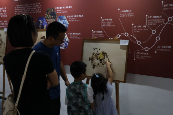 6月10日,作品展在长沙市雨花区非遗馆举办。现场展出手工艺术学院教授、宝庆烙画省级代表性传承人唐文林创作的《盛世金秋》《金秋》《红红火火》,以及指导学生创作的69件优秀课堂作业。作品以烙铁代替毛笔,采用勾、皴、点、渲等表现手法,通过诗、书、画的艺术表现形式,表现出浓淡、虚实的画面效果,烙画中既有温婉秀丽的江南女子,也有面朝黄土背朝天的劳动人民,有农家生活,有明清古巷,亦有藏族风情。现场还通过传习体验的方式,让市民、游客感受烙画技艺,让更多人领略宝庆烙画的独特魅力。
