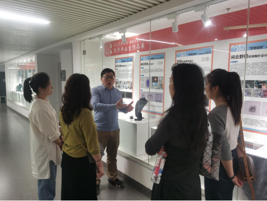 10月12日,长沙环保职业技术学院环境艺术与建筑学院视觉传达专业教研室主任侯赛一行4人来我校长沙基地参观交流研讨,手工艺术学院副院长王飞及首饰专任老师黄昕进行接待并陪同参观名师大师工作室、展厅,并介绍了手工艺术学院各专业的教学情况,同时对校企合作、产教融合、技能比赛等情况进行深入交流探讨。