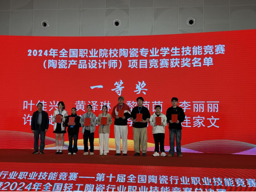 黄瑾怡、丁巾玲分别荣获2024年全国职业院校陶瓷专业学生技能竞赛(陶瓷综合设计(电脑设计))赛项一等奖、二等奖