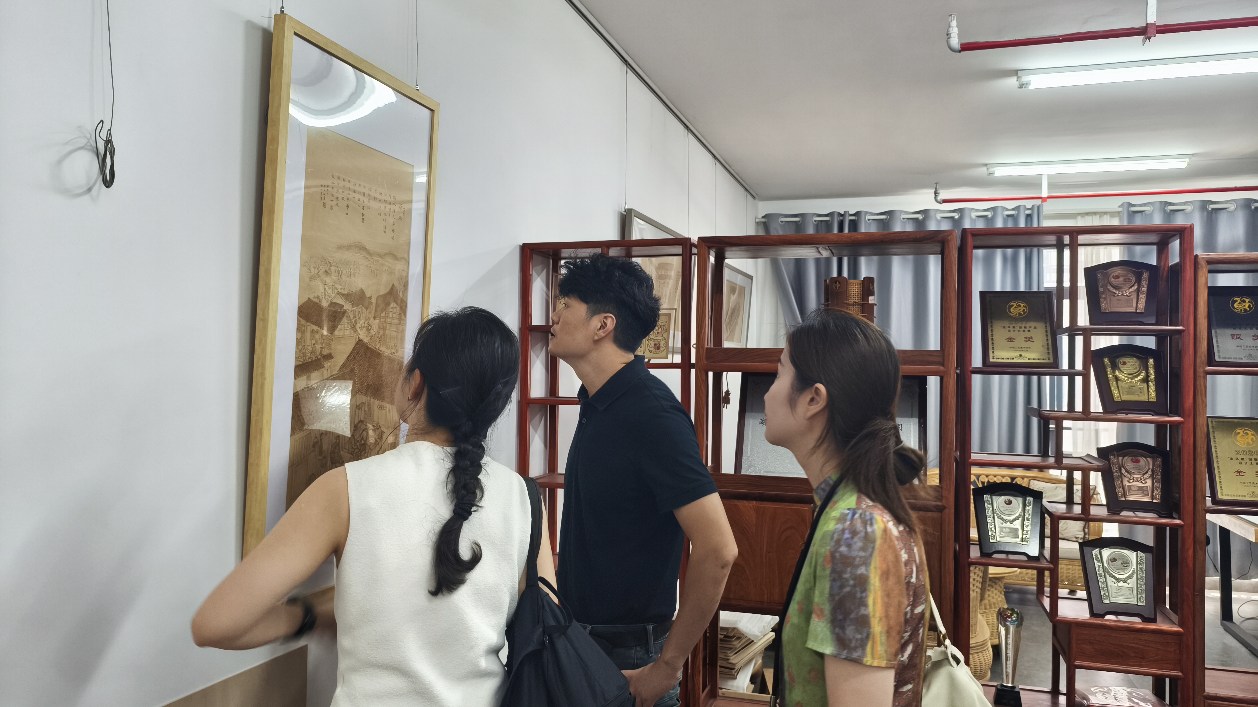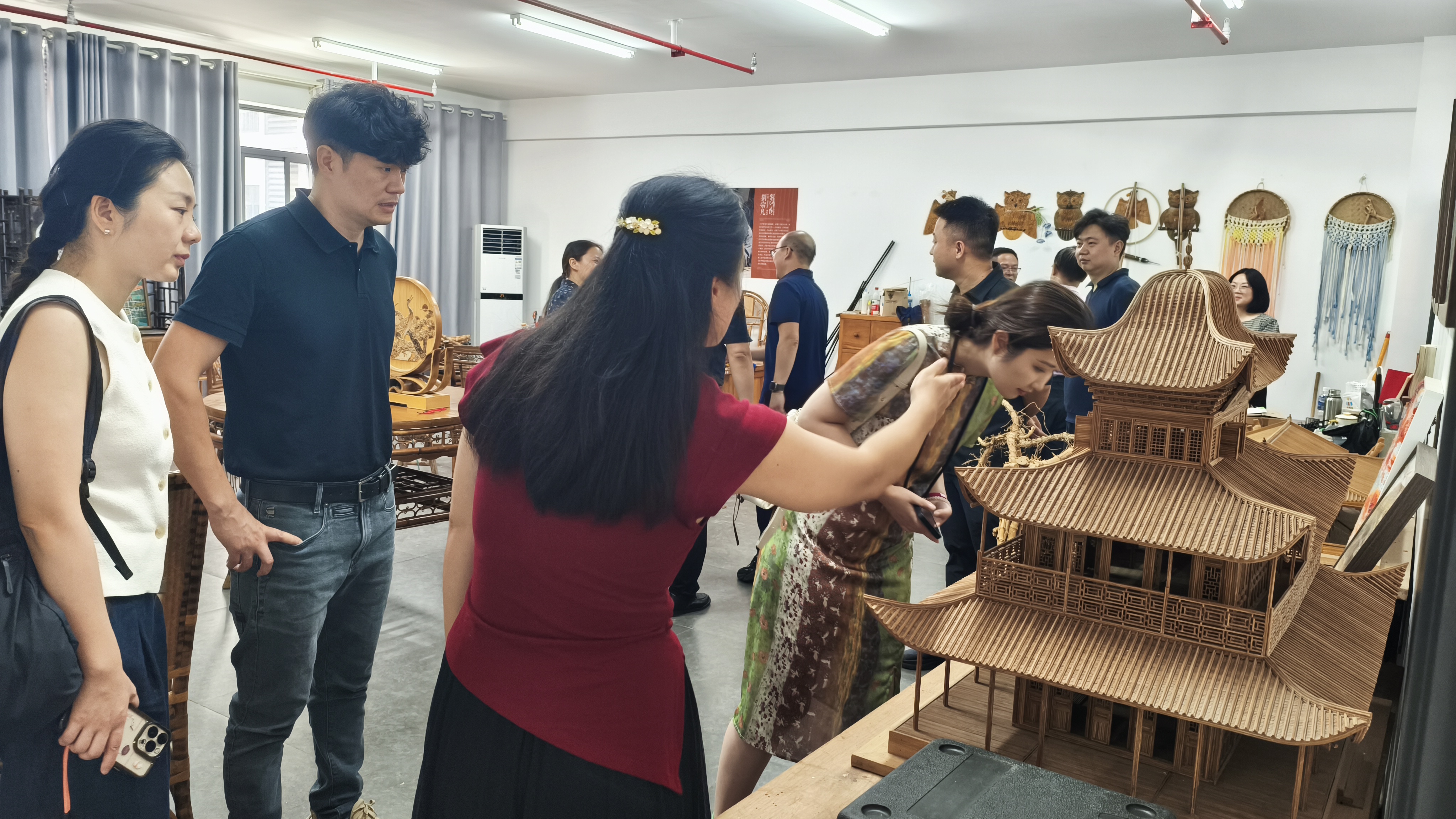 谢丽一行参观了手工艺术学院黄永平陶艺大师工作室、唐文林宝庆烙画工作室、刘宗凡竹艺大师工作室、熊志明竹制家具非遗工作室、学院展厅、学生作业橱窗及实训室,双方就专业建设、课程设置、毕业设计、非遗保护等进行交流探讨,谢丽一行对我院的办学成果、办学条件、教育教学尤其是非遗保护工作给予了高度评价。