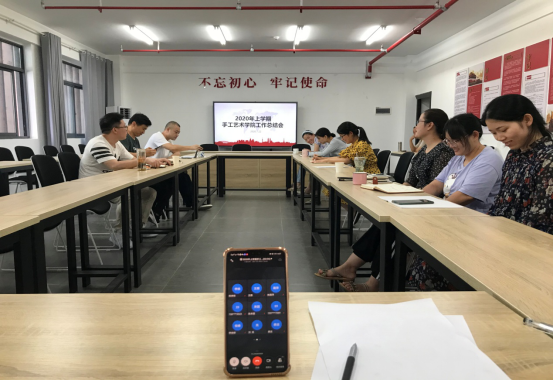 2020年7月22日,手工艺术学院在长沙基地教学楼201办公室了召开上半年工作总结大会。会议通过“现场+钉钉视频会议”相结合的方式进行,会议由总支副书记刘亮主持,学院院长侯可新、副院长王飞出席会议,全体管理人员参加现场会议,其他教师参加钉钉会议。