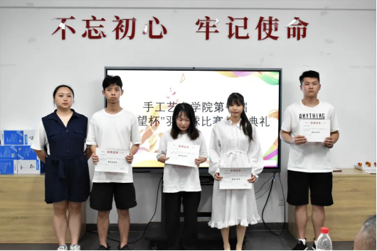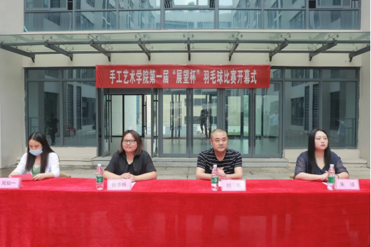 5月7日,手工艺术学院在教学楼天井羽毛球场举行“展望杯”羽毛球比赛开幕式,莅临本次开幕式的有:党总支书记刘亮、党总支副书记祝李杨、学生党支部书记周如一、团总支书记朱瑾,以及参与比赛的同学。