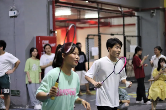 随着羽毛球赛步入尾声 ,比赛渐渐进入了白热化阶段。选手们身手矫健:有的大开大合,正面迎击坚决果断;有的刚中带柔,巧妙破解对手设下的诱饵。球与拍接触时发出的爽朗声、候场选手的战术讨论声、观众的惊呼呐喊声,将现场的氛围渲染地非常热烈。