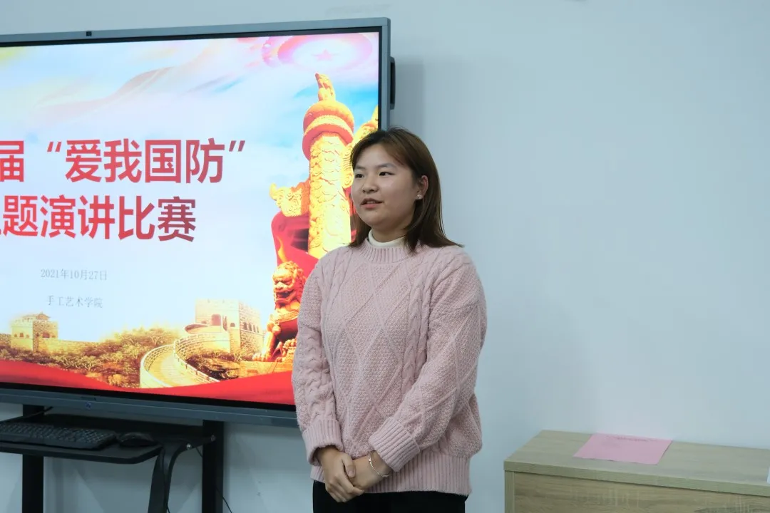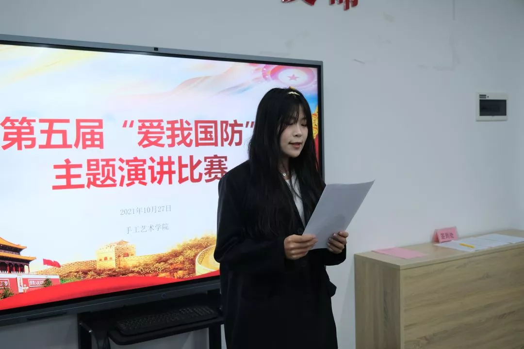 为纪念中国人民抗日战争暨世界反法西斯战争胜利76周年和人民志愿军抗美援朝出国作战71周年。手工艺术学院组织开展了第五届“爱我国防”主题演讲比赛活动。