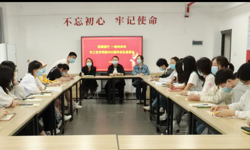为进一步了解毕业生就业意向,掌握毕业生思想动态,更好地开展毕业生就业指导服务工作,2022年5月20日下午,手工艺术学院在党员活动室召开2021届毕业生座谈会。手工艺术学院党总支副书记祝李杨、辅导员和学生代表等参加了会议,由辅导员周海燕担任主持人。