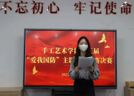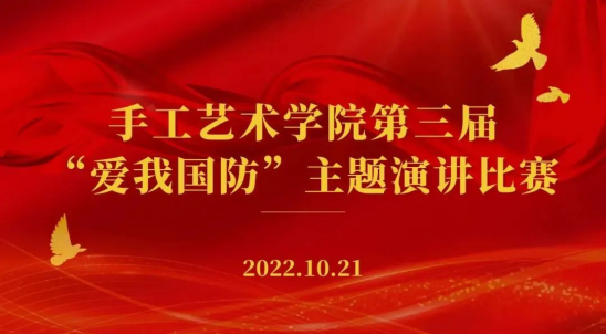 为庆祝纪念中国人民抗日战争暨世界反法西斯战争胜利77周年和中国人民志愿军抗美援朝出国作战72周年,喜迎党的二十大胜利召开之际,推动国防教育向全民深入普及。手工艺术学院开展第三届“爱我国防”主题演讲比赛活动。